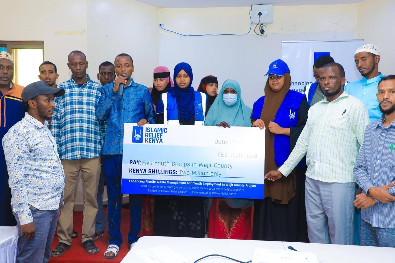 Islamic Relief Kenya on Tuesday donated a kitty of two million shillings to help youth in Wajir town to set up garbage collection points aimed at enhancing plastic waste management while offering employment opportunities.